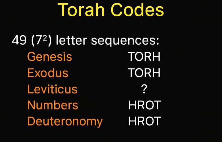 In the Book of Leviticus, the pattern changes. Instead of forming the word Torah through a 49-letter sequence, the text unveils something even more profound. By counting every 7th letter, the sequence spells YHWH—the sacred Name of God.