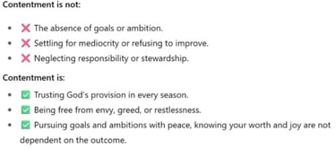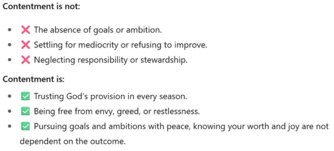 Contentment is learned, not automatic. This shows that contentment isn’t something we naturally have—it’s developed through walking with Christ in different seasons of life. Both lack and abundance can test us: poverty tempts us to despair, while prosperity tempts us to pride or self-reliance.