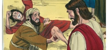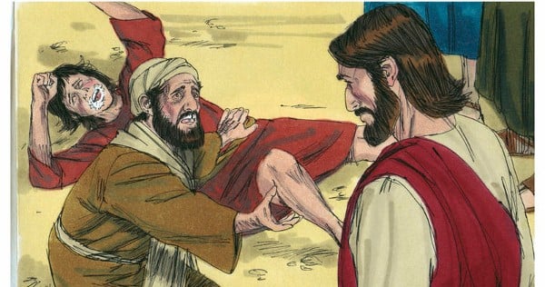 The boy’s father describes the tragic condition of his son, tormented by a destructive spirit that renders him mute, causes violent seizures, and seeks to destroy his life. The father had asked the disciples for help, but they were powerless to deliver the child. Jesus responds with a rebuke, grieving the pervasive unbelief—not only of the disciples, but also of the crowd and even the father himself.