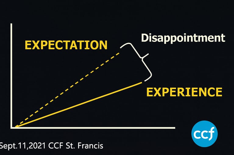 This chart illustrates the relationship between expectation, experience, and disappointment. Expectations often rise faster than reality because they are shaped by our hopes, assumptions, and desires, while real-life experiences tend to progress more slowly and unevenly. When experience fails to meet expectation, a gap is created, and that gap is called disappointment. Disappointment is a normal and unavoidable part of life, but if it is not handled properly, it can lead to negative emotions such as anger, discouragement, and even depression. These emotions can affect our relationships, distort our perspective, and weaken our faith if we allow them to control our responses. Because disappointments are certain in a fallen world, it is important to learn how to deal with them in a healthy way. This means examining our expectations, recognizing that not all of them are aligned with reality or God’s will, and choosing to respond with trust, humility, and dependence on God. When expectations are surrendered to the Lord, disappointment no longer becomes a destructive force but an opportunity for growth, maturity, and deeper faith.